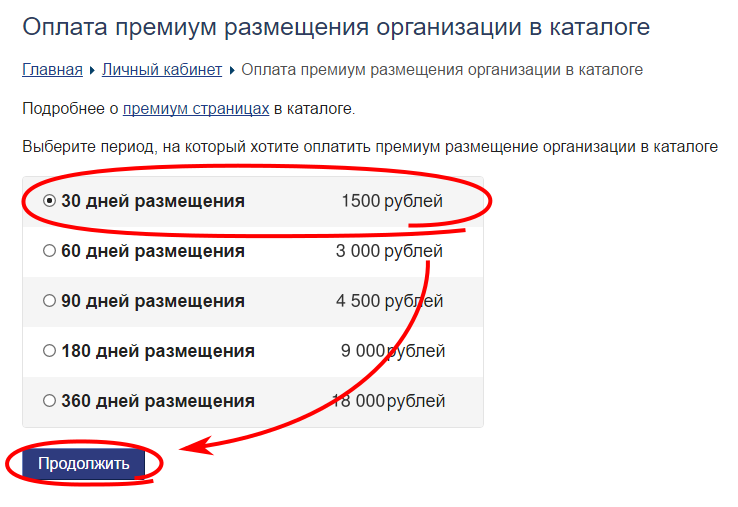 Выберите срок оплаты/продления и нажмите кнопку "Продолжить".