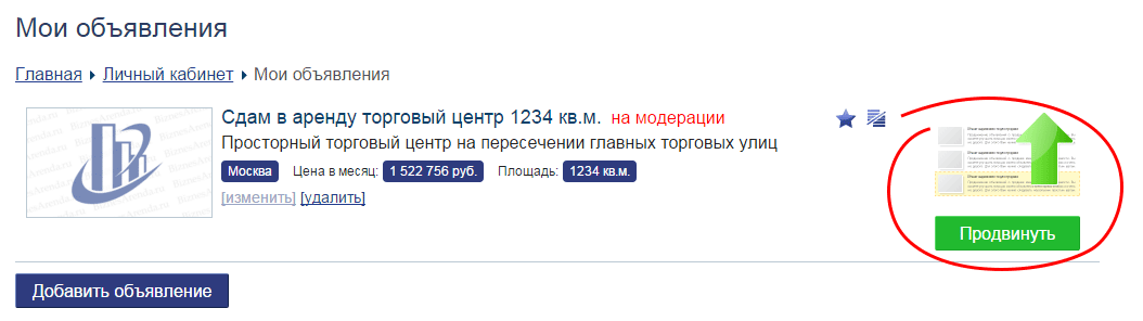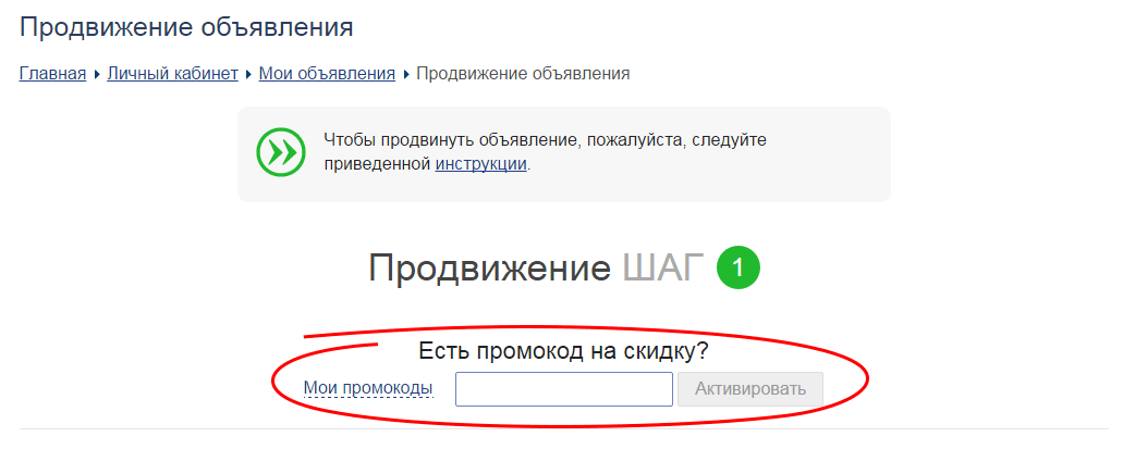 Нажмите на кнопку "Продвинуть объявление" в списке объявлений.